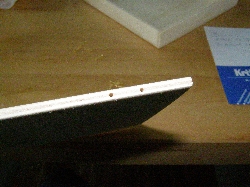Je nach Länge der für die Scharniere verwendeten Schrauben ist es nötig, innen in den Kasten eine Verstärkung der Rückwand zu leimen, damit die Spitzen der Schrauben nicht herausschauen. |