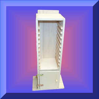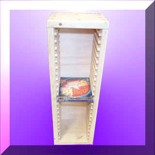 (Von links nach rechts: Bücherstütze, CD-Ständer, DVD-Ständer mit Türchen, CD-Ständer mit Fach, Tischchen)