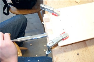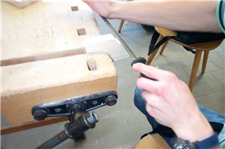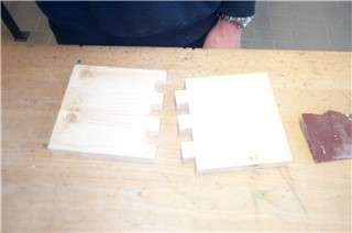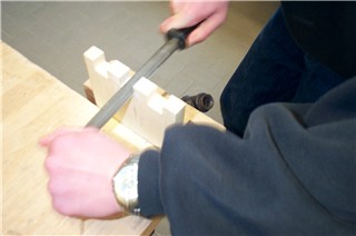 Die Fingerzinken werden mit Hilfe der Holzfeile ausgearbeitet, um besser zu passen. |