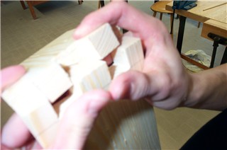 Werkstück Nummer 3: Zwei der Schüler aus der Gruppe haben sich dafür entschieden Bücherstützen zu bauen. Natürlich musste jeder von ihnen mehrere Stützen anfertigen, um den Arbeitsaufwand in irgendeiner Weise mit dem der anderen Aufgaben gleichzusetzen.