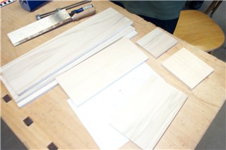 Hier sieht man zuerst einmal, aus welchen Materialien das Werkstück entstehen soll. Es handelt sich hierbei um Sperrholzplatten. |