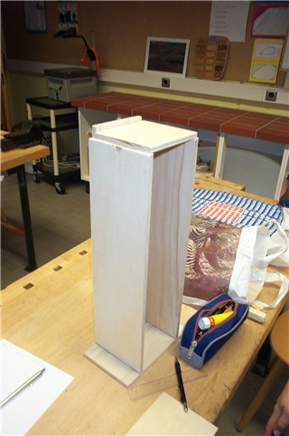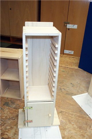 Im unteren Bereich wird ein Türchen eingebaut und schließlich ist das Werkstück fertiggestellt. |