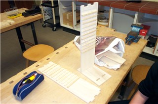 Eine erste Montage des Werkstücks. Hier ist bereits durchaus zu erkennen, wie der CD-Ständer später einmal aussehen soll. |