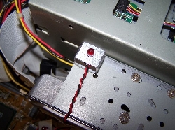 Um die Leuchtdioden zu den leichter zugänglichen Bauteilen im Computer anzubringen, schnitt ich mir aus einem Alu-Vierkantrohr einige Stücke, in deren flache Seite ich Löcher mit einem Durchmesser von 5 mm bohrte, um dort später die Leuchtdioden anzubringen. |