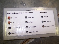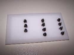 Danach habe ich eine Deckplatte aus einer dünneren Plexiglasplatte zugesägt und mit Löchern versehen, in welche später die Schalter zur Ansteuerung der einzelnen LEDs eingesetzt werden sollten. Die Abstände der Schalter habe ich vorher festgelegt, um sie mit einer Tabelle, die ich als Übersicht für die einzelnen Bauteile angefertigt hatte, abzustimmen. |