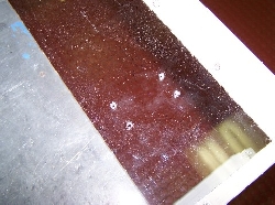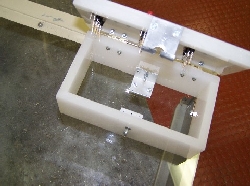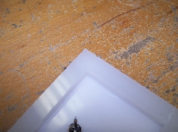 Anschließend fertigte ich eine Plexiglasscheibe an, die etwas größer als das Loch war und bohrte Löcher in Plexiglasplatte und Blechrahmen. Mit einigen Schrauben M3 x 15 verband ich schließlich Rahmen und Kunststoffscheibe |
