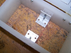 Um den Schaltkasten später auf die Platte zu schrauben, habe ich zwei Metallwinkel eingeschraubt. |