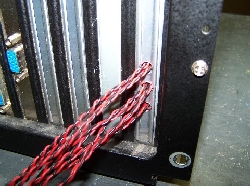 Um eine Zugsicherung zu erhalten, habe ich jeweils drei bis vier der doppelten Drähte miteinander verknotet. Der Knoten verhindert, dass die Kabel zu weit nach außen gezogen werden können. |