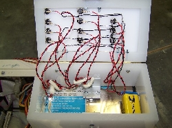 Der Schaltkasten war nun beinahe fertig gestellt. Fehlten nur noch einige kleine Löcher auf der Rückseite, durch die später die Drähte geführt werden sollten. |