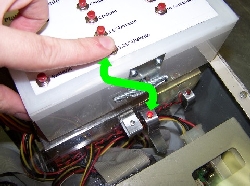 Um den Schaltkasten am Computer anzubringen, habe ich vier Löcher in die Deckplatte gebohrt,... |
