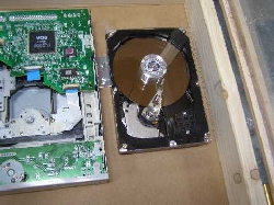Die Festplatte habe ich vorher durch eine Plexiglasplatte geschützt. |